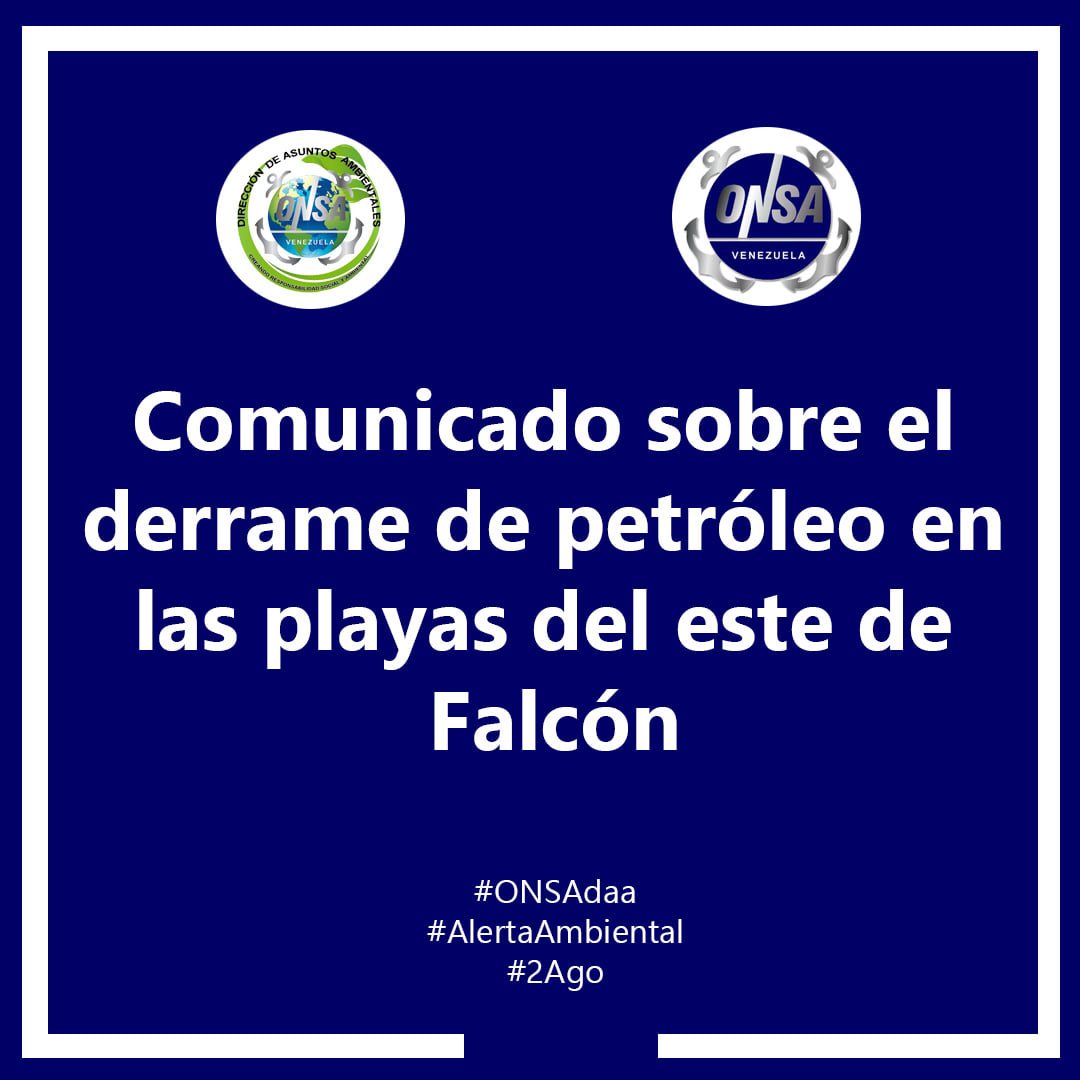 Desde la Dirección de Asuntos Ambientales de la Organización Nacional de Salvamento y Seguridad Marítima de los espacios Acuáticos de Venezuela (ONSA de Venezuela) hemos recibido la denuncia de derrame de crudo en las playas al este de Falcón, en la zona de Boca de Aroa y Tucacas, el domingo 2 de Agosto de 2020. Nuestros miembros en la organización han presenciado y confirmado la presencia de manchas de petroleo en las costas y a escasos metros de la costa de Chichiriviche, estado Falcón.