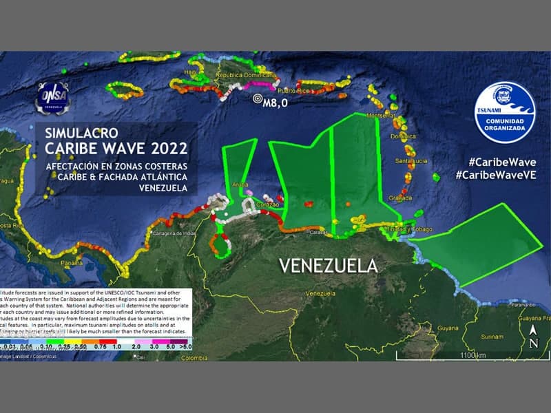El escenario para Venezuela será el que simula un tsunami generado por un terremoto de magnitud 7.9 ubicado al Oeste del Canal de los Muertos.