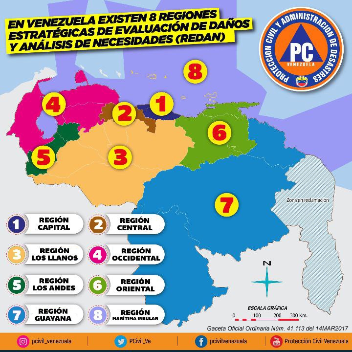 - REF.: MAPA de las REDAN (Regiones Estratégicas de Evaluación de Daños y Análisis de Necesidades), conforme a la Resolución Núm. 039 del 20FEB2017, publicada en la Gaceta Oficial Ordinaria Núm. 41.113 del 14MAR2017.