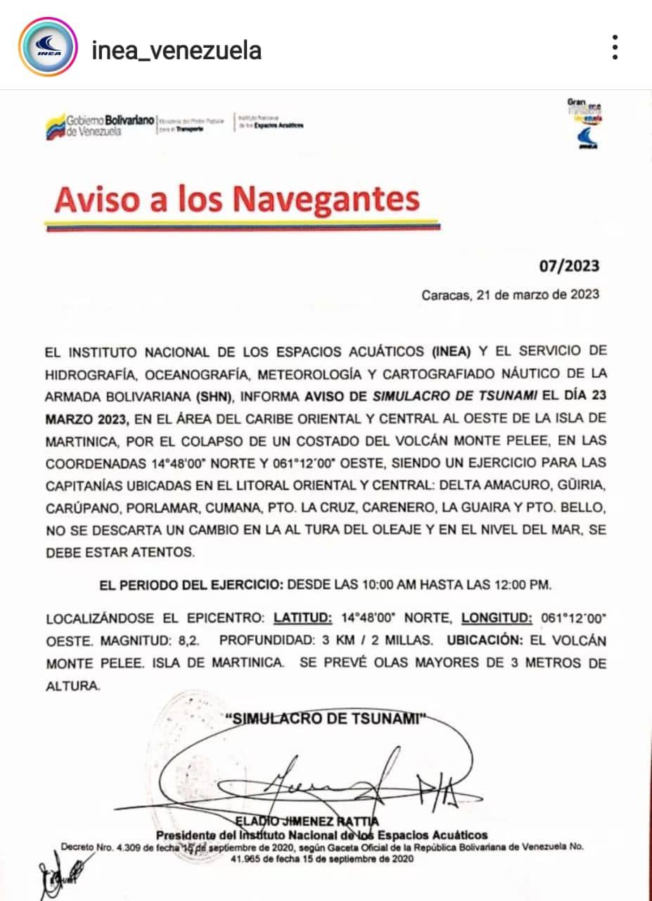 - El ejercicio regional anual sobre tsunamis, CARIBE WAVE 2023, se llevará a cabo el 23 de marzo de 2023, a partir de las 1400 UTC. Para participar como voluntario a través del Cuerpo de Apoyo & Salvamento Marítimo de ONSA Venezuela, puedes registrarte «aquí con nosotros».