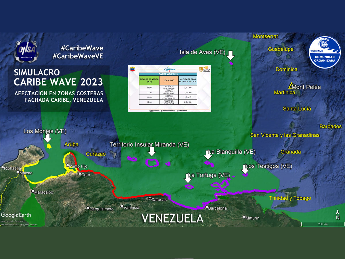 - El ejercicio regional anual sobre tsunamis, CARIBE WAVE 2023, se llevará a cabo el 23 de marzo de 2023, a partir de las 1400 UTC. Para participar como voluntario a través del Cuerpo de Apoyo & Salvamento Marítimo de ONSA Venezuela, puedes registrarte «aquí con nosotros».
