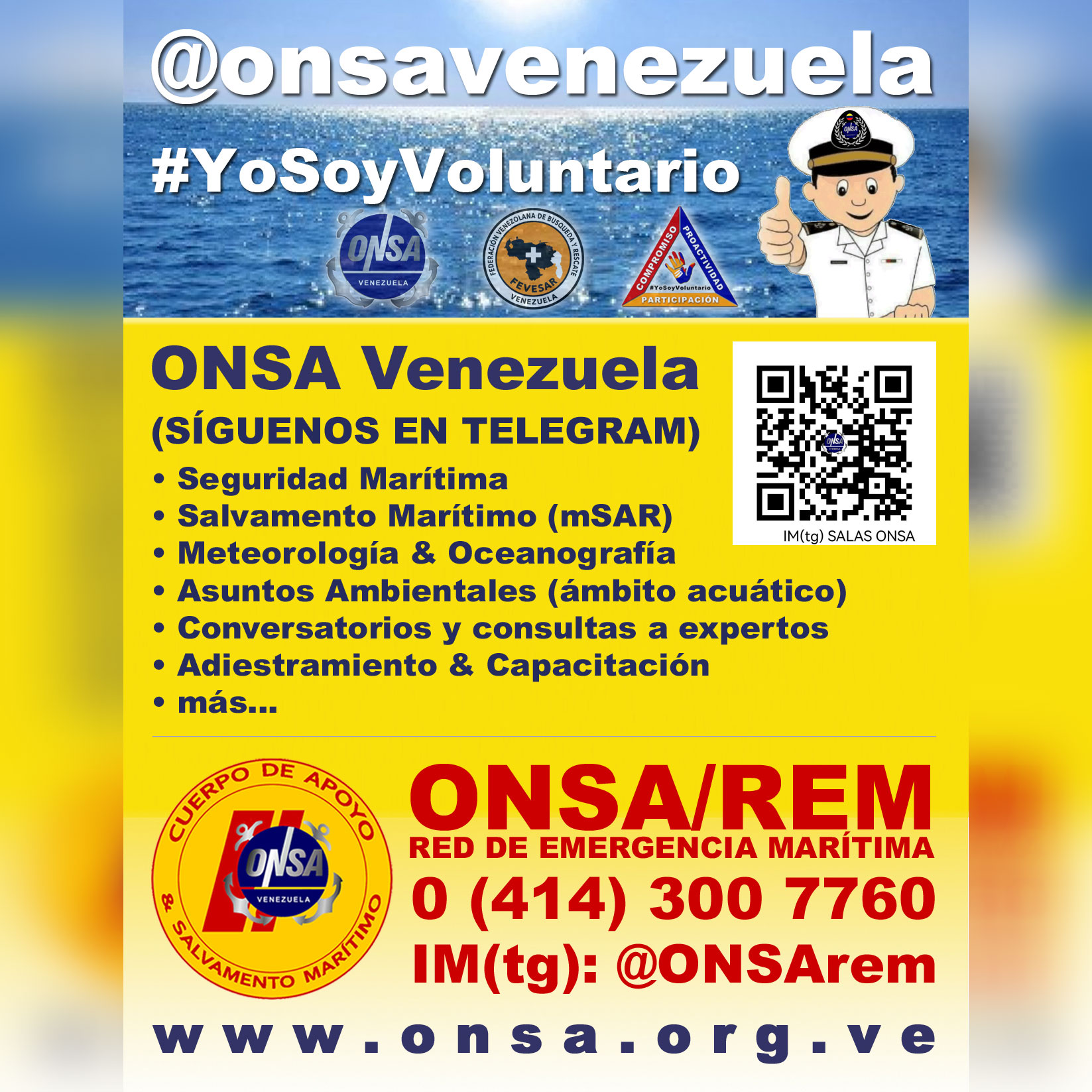 Canal Zello para operaciones de la Red de Emergencia Marítima (ONSA/REM) vía "push-to-talk" (PTT) tipo "walkie-talkie" disponible para cualquier dispositivo Android, iOS, Blackberry, Windows Phone, Windows PC «haciendo clic aquí» (bloquedado para usuarios CANTV).