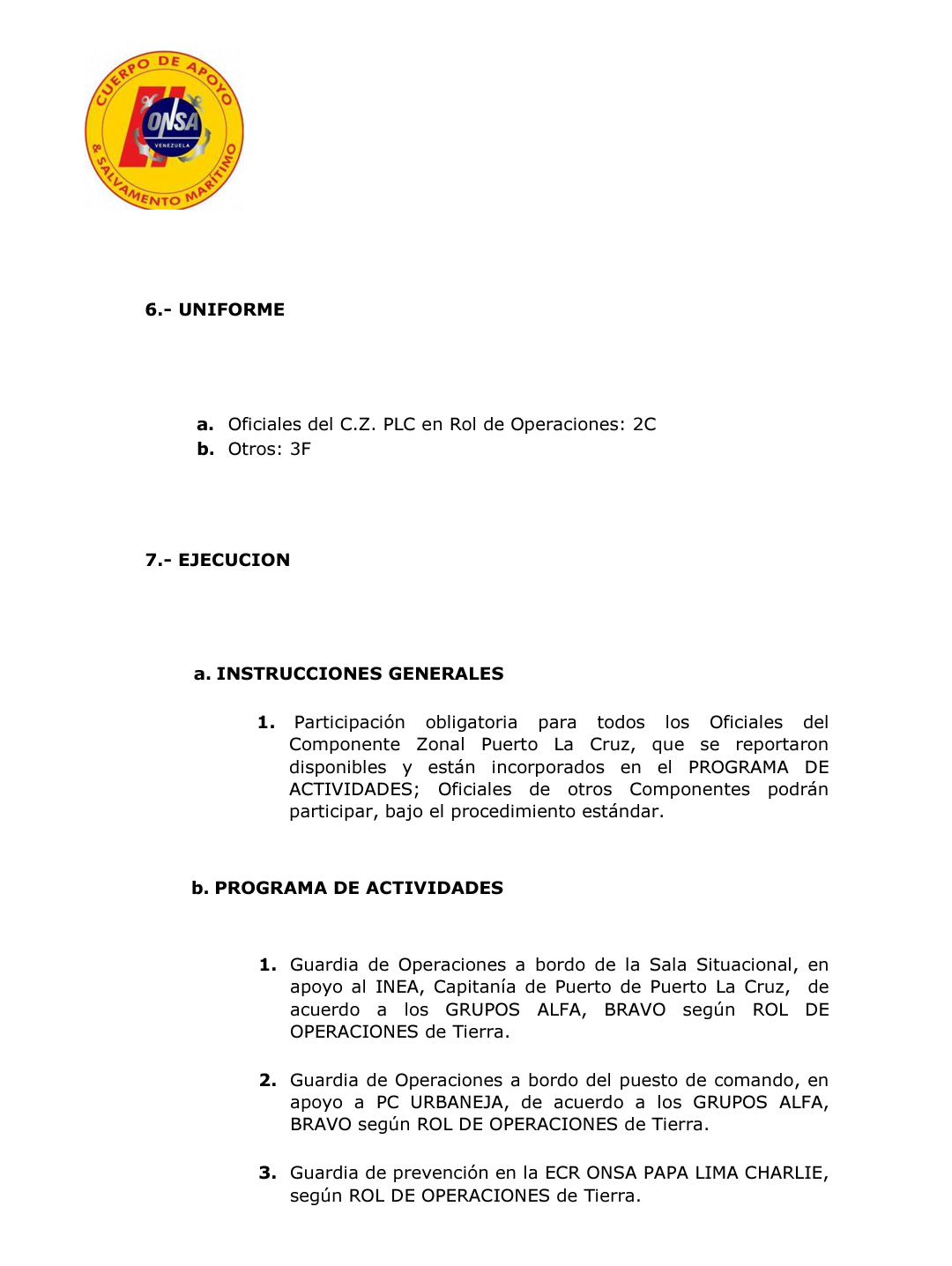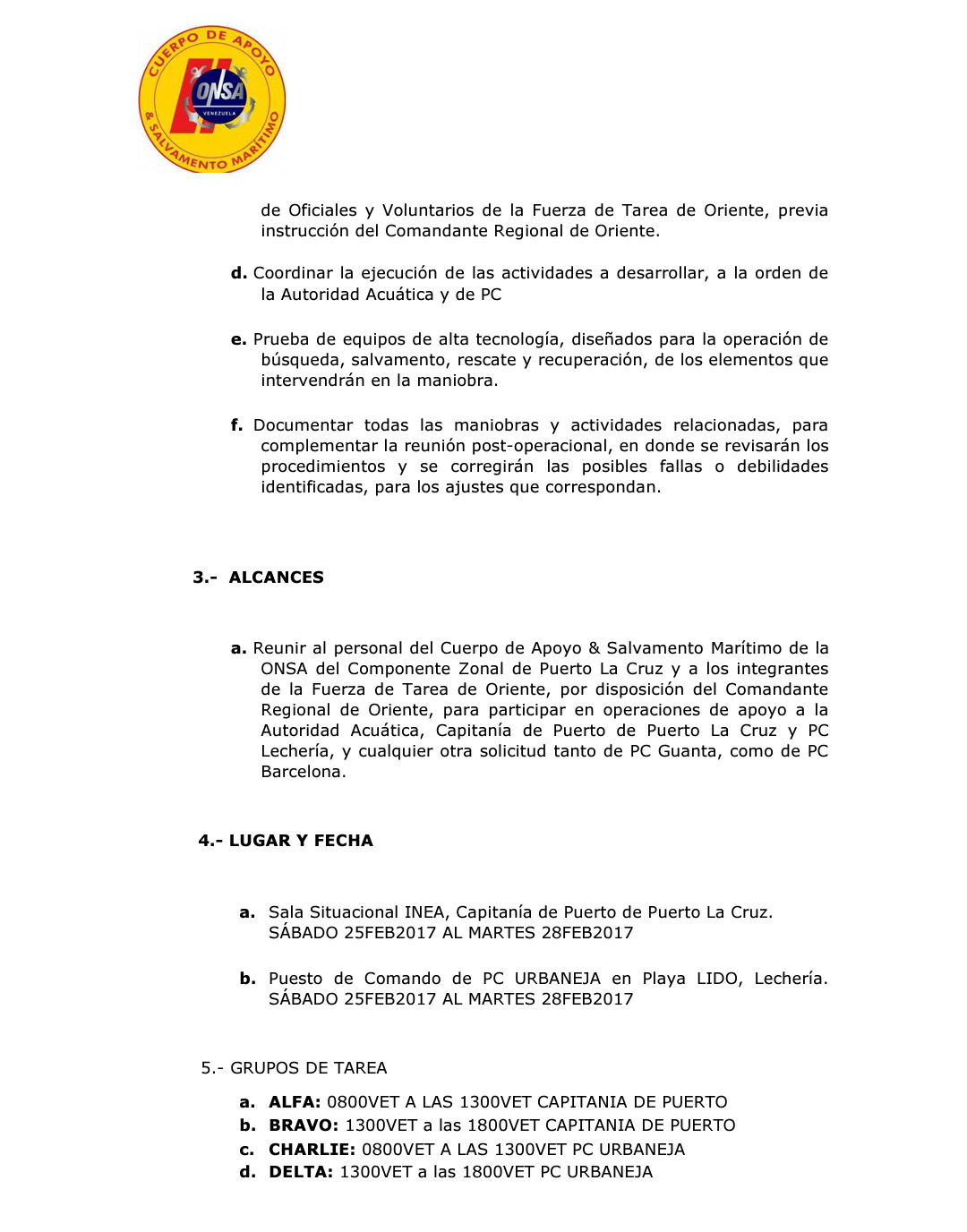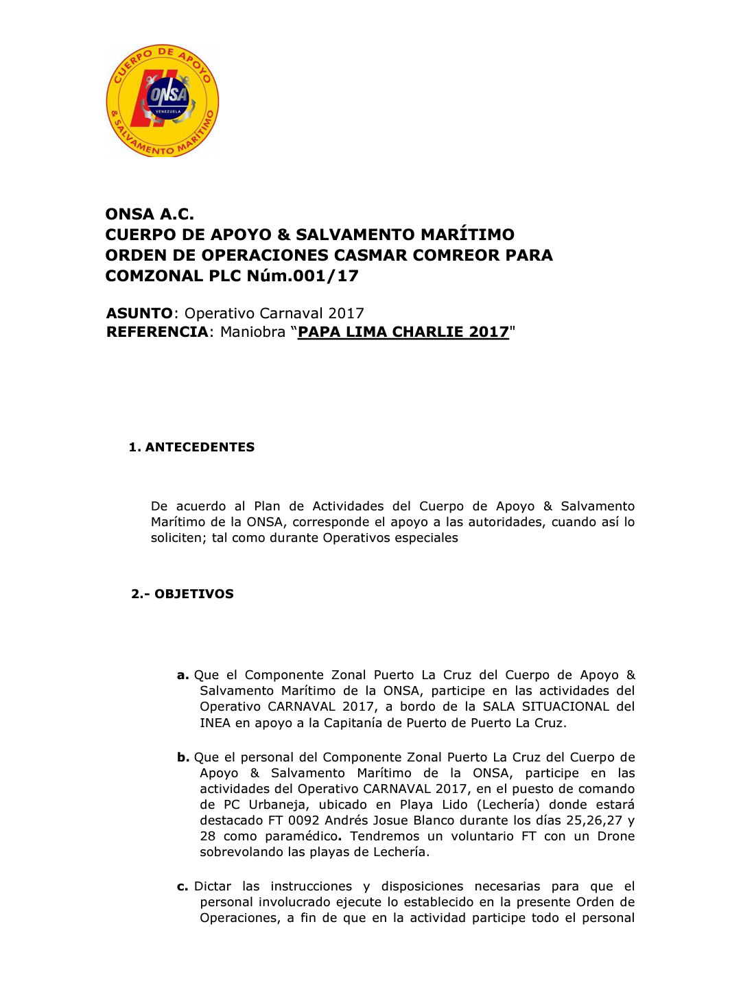 Orden de Operaciones Carnaval 2017 PAPA LIMA CHARLIE