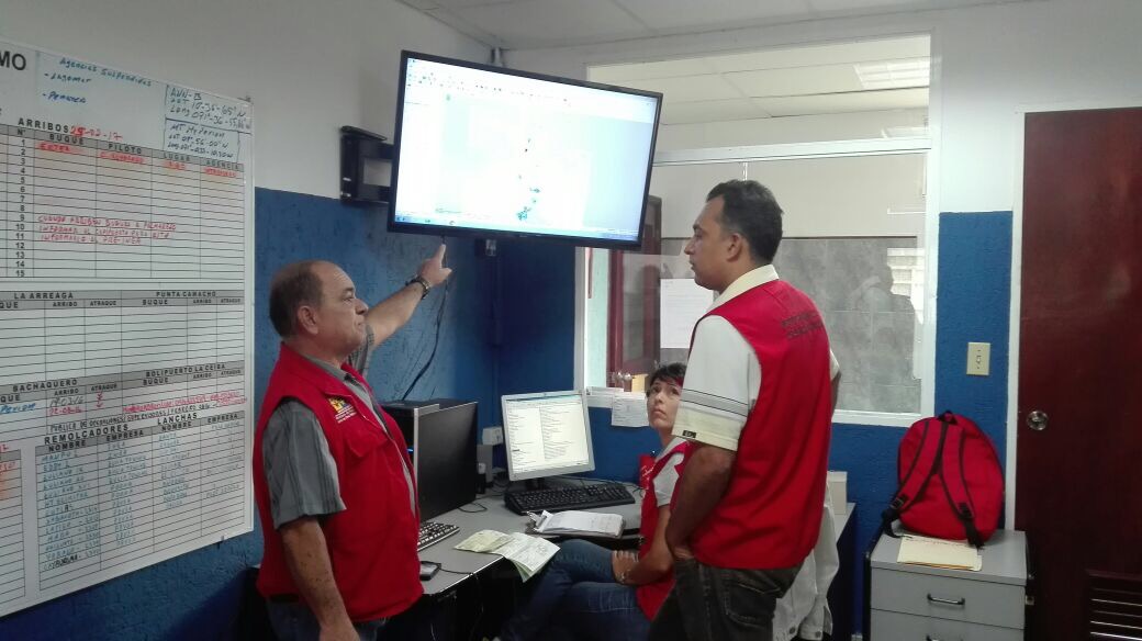 En la mesa de trabajo de la Sala Situacional de la Capitanía de Puerto Maracaibo, trabajando en representación de la ONSA/CASMAR durante otra jornada del Operativo Carnaval 2017