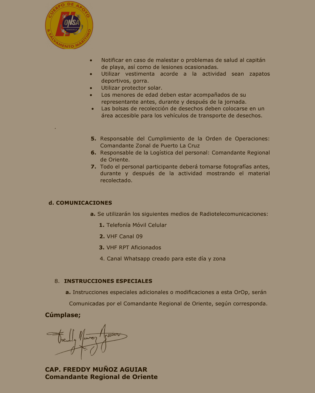 Esta es la Orden de Operaciones para el Día Mundial de las Playas en Lechería, Estado Anzoátegui.